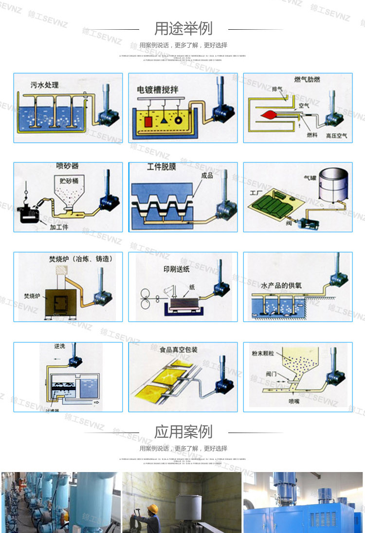 羅茨鼓風(fēng)機(jī)一般用在污水處理、環(huán)保、礦山、石油、化工、水泥、鑄造、食品、醫(yī)藥、造紙、氣力輸送、粉體顆粒輸送、化肥、建材、電力、煤炭、水產(chǎn)養(yǎng)殖等諸多行業(yè)。多是利用羅茨風(fēng)機(jī)輸送空氣,添加機(jī)械合金密封后,也可以用于輸送可燃?xì)怏w。